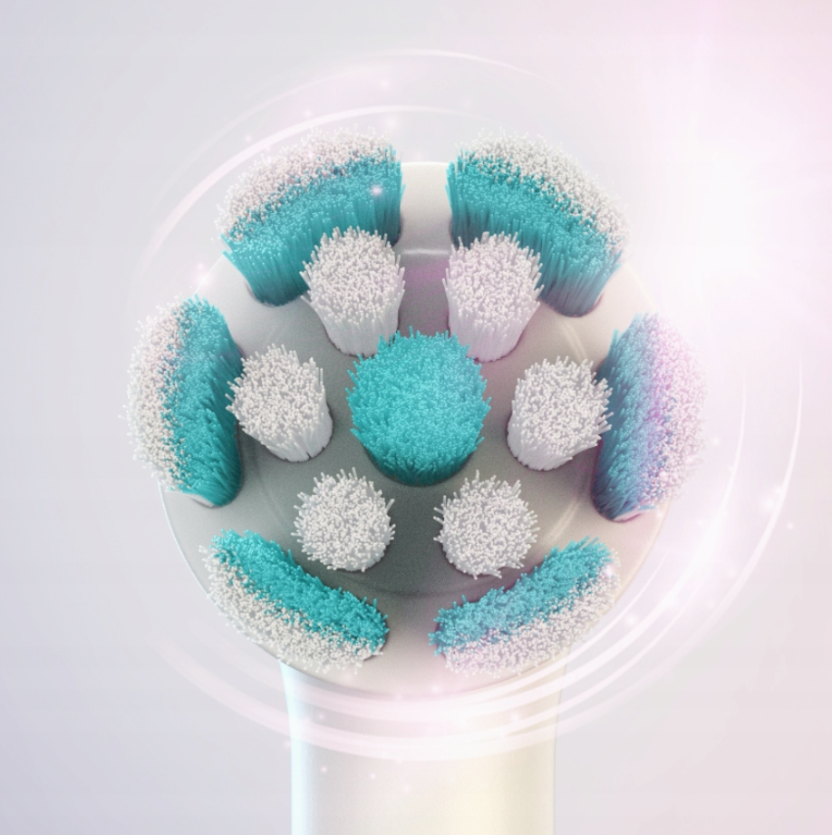Główki końcówek zostały zaprojektowane tak, aby dopasowywały się do każdego zęba i perfekcyjnie usuwały płytkę nazębną, a także masowały dziąsła. W ten sposób skutecznie oczyścisz swoje zęby oraz zadbasz o zdrowie dziąseł poprzez poprawę ich ukrwienia.